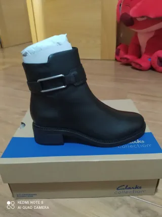 Botín de piel de la marca Clarks. Un diseño elegante y versátil. - Material exterior de piel. - Detalle de hebilla metálica. - Tacón bajo.