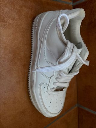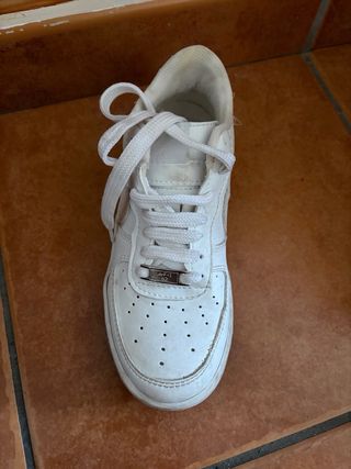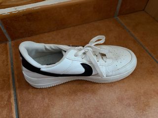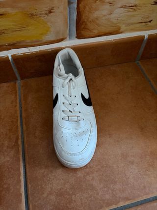 Zapatillas deportivas Nike Air Force 1 en color blanco con detalles en negro. - Diseño clásico y versátil. - Cierre con cordones. - Logo de Nike en el lateral.