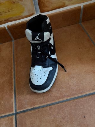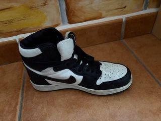 Zapatillas altas de estilo deportivo. - Diseño clásico en blanco y negro. - Detalle de Swoosh lateral. - Cordones negros. - Puntera perforada.
