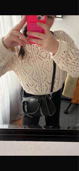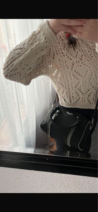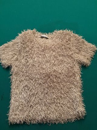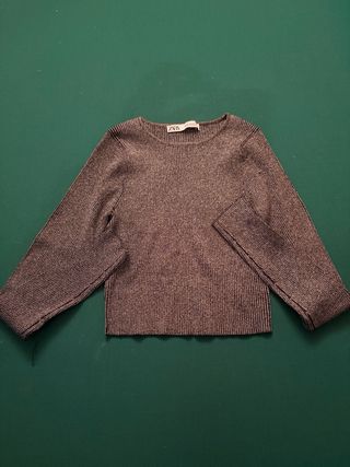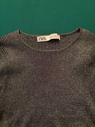 Jersey de Zara con un tejido brillante y acanalado. - Diseño de cuello redondo. - Manga larga. - Acabado metálico.