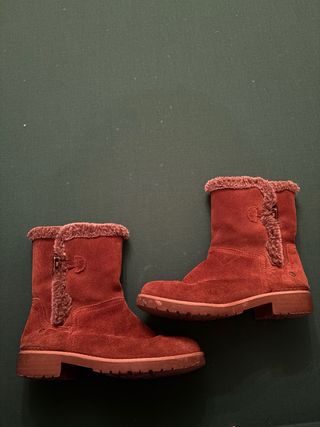 Botas de ante con forro interior de pelo sintético. - Detalle de hebilla. - Suela de goma. - Caña media.