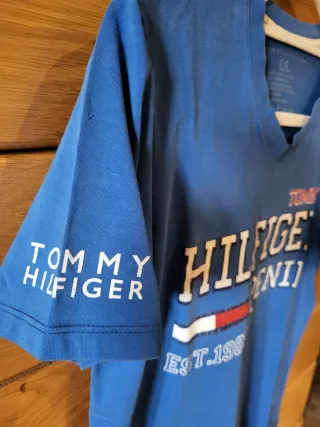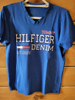 Camiseta de manga corta con cuello en V y un diseño gráfico llamativo en la parte delantera. - Estampado Tommy Hilfiger Denim Est. 1985. - Detalle de bandera icónica de la marca.