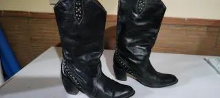 Botas altas de cuero con un diseño moderno y detalles metálicos.Hechas en España ,de piel - Material: Cuero - Color: Negro - Adorno de tachuelas plateadas - Tacón medio - Caña alta