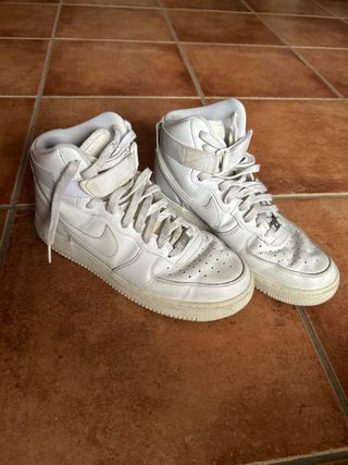 Zapatillas altas Nike Air Force 1 en color blanco. Un clásico para tu día a día. - Cierre de velcro en el tobillo. - Cordones blancos. - Suela de goma.