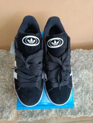 Zapatillas Adidas Campus 00s. - Diseño en color negro con detalles blancos. - Logo de Adidas en la lengüeta.