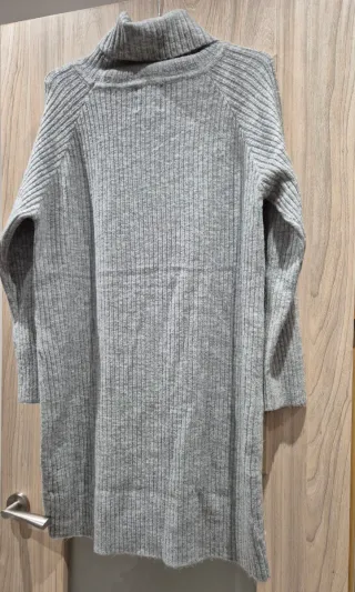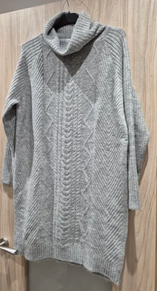 Vestido elastico con un diseño de trenzas y rombos en la parte delantera. Es talla L pero mide 90cm de largo y 55cm ancho da bastante talla seria como una 46 o incluso 48. - Tejido de lana suave. - Diseño de trenzas. - Cuello alto.