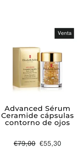 Cápsulas de sérum para el contorno de ojos de Elizabeth Arden. - Sérum restaurador de juventud. - Contiene 30 cápsulas. Precio en tienda supera los 55€. Mas productos de la marca en mi perfil si quieres mas de uno arreglo precio.