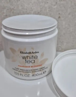 Crema corporal de Elizabeth Arden con aroma a té blanco y flor de mandarino. Una indulgencia para la piel. - Aroma: White Tea Mandarin Blossom - Tamaño: 400 ml / 13.5 fl oz. - Nuevo y precintado. Su precio en tienda con oferta supera los 18€, mas productos de la marca en mi perfil, por la compra de 2 o mas arreglo precio.