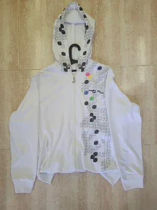 Chaqueta deportiva con capucha y cremallera frontal. - Diseño gráfico de cubos. - Capucha. - Cremallera frontal. - Gomas elásticas en perfectas condiciones.