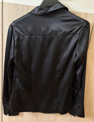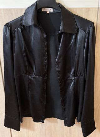 Elegante camisa de Gabalca en color negro. Su diseño satinado le da un toque sofisticado. - Corte entallado. - Cuello camisero. - Cierre de botones. - Mangas largas con puño.