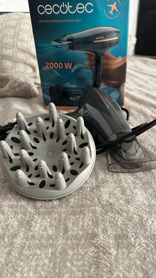 Secador de pelo Cecotec en color gris y negro. Modelo Ionicare Power&Go Heaven Grey. - Potencia de 2000 W. - Incluye accesorio difusor. - Diseño plegable para viaje.