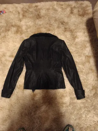Elegante chaqueta de la marca Zeila, con un diseño moderno y detalles cuidados. - Color negro. - Cuello de pelo sintético. - Cinturón a juego con hebilla metálica. - Puños con detalle. - Corte entallado. - Talla 42