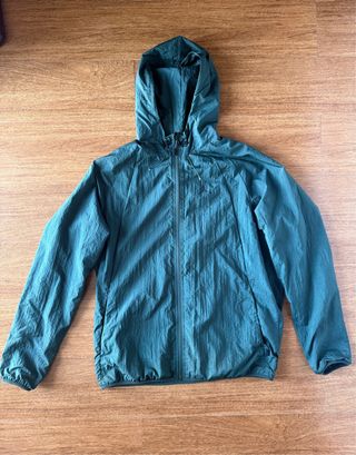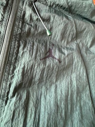 Cortavientos Jordan de color verde. Es una prenda ligera y con capucha. - Cierre de cremallera. - Puños elásticos. - Cordón ajustable en el bajo.