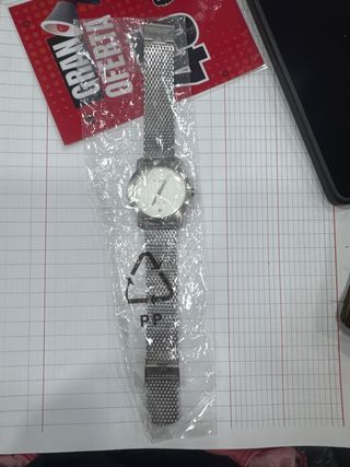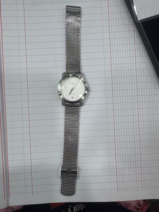 Reloj Trident con detalles plateados y esfera blanca, aún con su plástico protector. Hablar por mensaje, se cuenta con stock del mismo modelo - Correa de malla metálica. - Cierre ajustable.