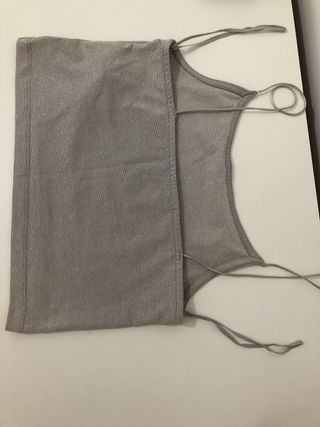 Top STR brillo plateado talla M
