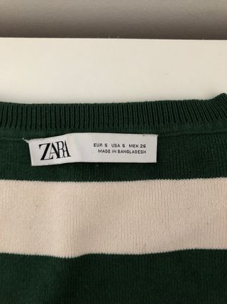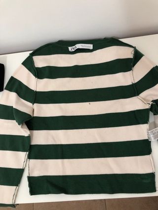 Camiseta Zara Rayas Verde y Blanca Talla S