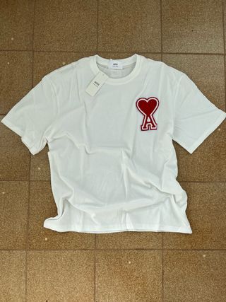 Camiseta de AMI Paris con un diseño distintivo. - Logo de corazón rojo con la letra 'A' bordada en el pecho. - Cuello redondo y manga corta. Medidas: 55 cm hombro a hombro 70 cm de largo Ideal para ir mas arreglado pero con look causal.