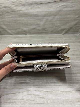 Elegante cartera para mujer con un diseño moderno. - Estampado geométrico en blanco y negro. - Cierre de solapa con botón. - Bolsillo exterior con cremallera. >Envios en 24/48 horas >Precio negociable