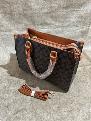 Bolso de mano y hombro. - Diseño monograma en marrón y negro. - Asas superiores y correa desmontable. - Compartimento principal con cierre de cremallera. >Envíos en 24/48 horas >Precio negociable
