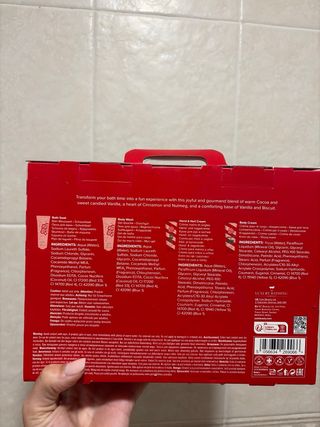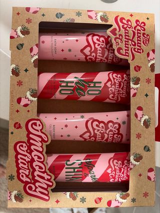 Set de baño de The Luxury Bathing Co. con temática navideña. - Incluye 4 productos de 100ml cada uno. - Contiene Bath Soak, Hand & Nail Cream, Body Wash y Sparkle & Shine. - Presentado en una caja decorada con motivos festivos.