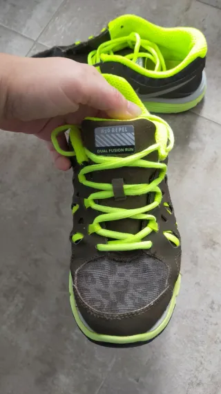 Zapatillas deportivas Nike para running, ideales para cualquier persona. - Diseño moderno en tonos marrón y verde. - Detalles de malla para mayor transpirabilidad. - Suela con tecnología Dual Fusion. - Resistentes al agua.