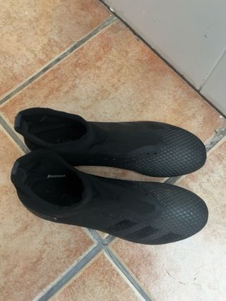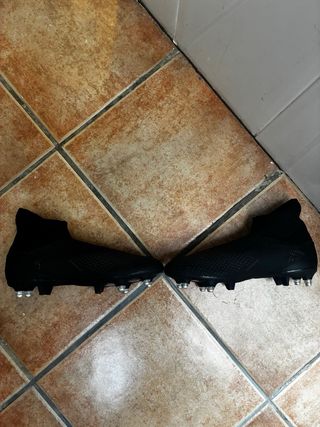 Botas de fútbol Adidas Predator en color negro. Diseñadas para un excelente agarre y control en el campo. - Diseño moderno y elegante. - Materiales de alta calidad para mayor durabilidad. - Suela con tacos para tracción óptima.