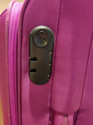 Maleta de cabina de la marca American Tourister en color morado. Perfecta para viajes. - Asa retráctil. - Ruedas para facilitar el transporte. - Bolsillo exterior con cremallera.