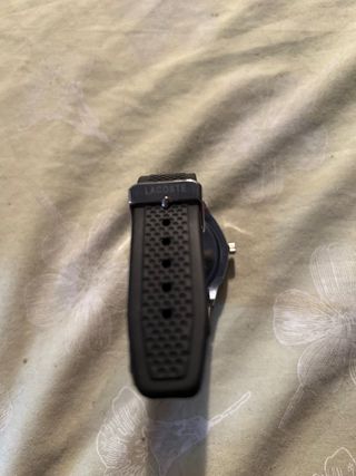 Reloj de pulsera Lacoste con un diseño moderno y elegante. - Esfera plateada. - Correa de caucho negra. - Bisel con detalles en negro y plateado.