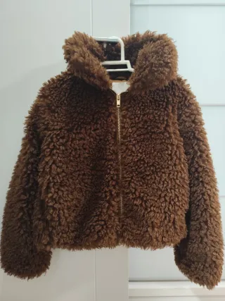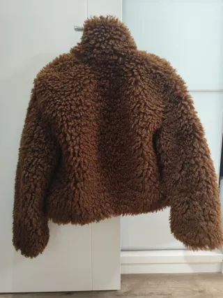 Chaqueta de borreguito marrón. De H&M Talla XS Cierre cremallera frontal dorada. Bolsillos laterales Agotada en la web