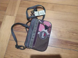 Pequeña cartera de color marrón con varios compartimentos para tarjetas y un bolsillo con cremallera. Incluye un llavero. - Material: Polipiel. - Diseño con costuras. - Cierre de cremallera.