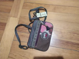 Bolso con un diseño patchwork y detalles de borlas. - Cierre de cremallera. - Correa ajustable. - Adornos metálicos. Sin estrenar.