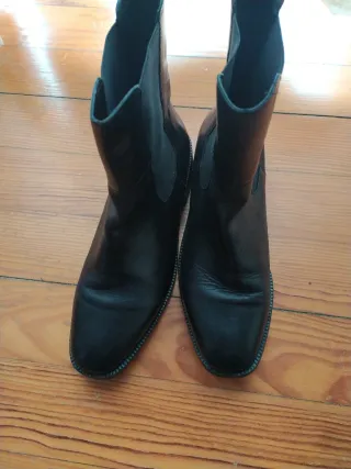 Botas en color negro. - Diseño elástico en los laterales. - Material exterior de cuero. Usadas pero bien conservadas No tengo la Caja.