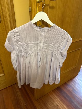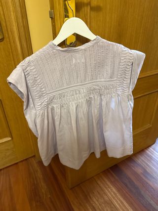 Blusa de la marca Isabel Marant, modelo Leaza. Prenda con un diseño delicado y elegante. Prácticamente nueva - Mangas cortas. - Cuello redondo con botones. - Detalle de fruncidos y plisados en el pecho y mangas.
