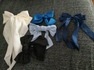 Conjunto de lazos de tela en diferentes tonos. - Lazo grande - Lazo azul. - Lazo azul claro. - Lazo negro. - Lazo azul marino. 6 euros todos los lazos