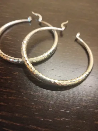 Elegantes pendientes de aro con un diseño martillado que les da un acabado texturizado y brillante. Son un accesorio versátil y llamativo. - Material: Plata. - Diseño: Aro martillado.
