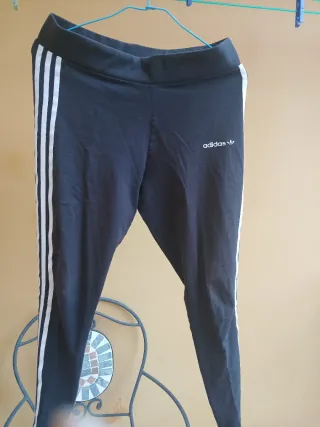 Leggings Adidas en talla XS, en excelente estado. - Diseño clásico con tres rayas blancas a los lados. - Logo de Adidas bordado en la parte superior.