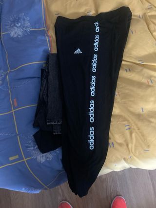 Mallas deportivas Adidas de tres cuartos. - Diseño clásico con tres rayas laterales. - Cintura elástica cómoda. - Tejido transpirable. Talla S pero realment son como una XS por eso no las he podido ni estrenar.