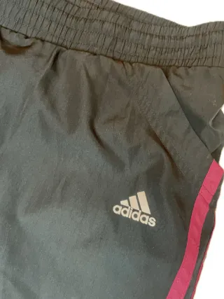 Pantalón deportivo de Adidas. - Diseño clásico con tres rayas blancas a los lados. - Cintura elástica para mayor comodidad.