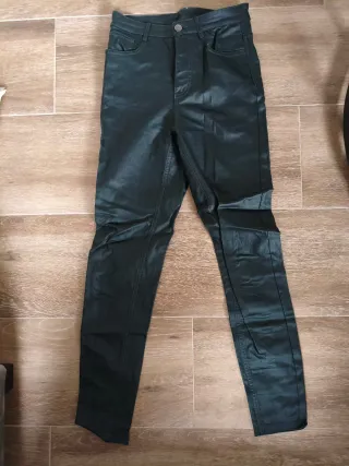 Pantalón con un acabado que imita la piel, diseñado para ser elástico y cómodo. - Material: Imitación de cuero. - Diseño: Elástico.