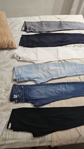 pantalones pitillo en diferentes colores. Son de talla XXS/32 XS34. Están en buen estado. Pregunta sin compromiso Alguno tiene desgaste - Pantalones de tiro bajo - Ajuste ceñido.