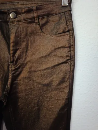 Pantalón pitillo con un acabado metalizado que le da un toque especial. - Corte ajustado. - Diseño moderno.