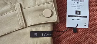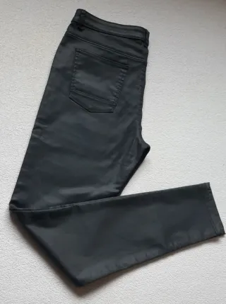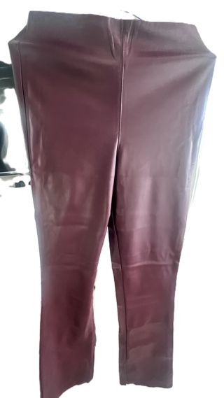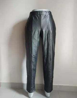 Pantalón de polipiel con corte recto. Tejido flexible y elástico. Nunca usado. Se ajusta para 42/44. - Diseño liso. - Cintura alta. - Pierna recta.