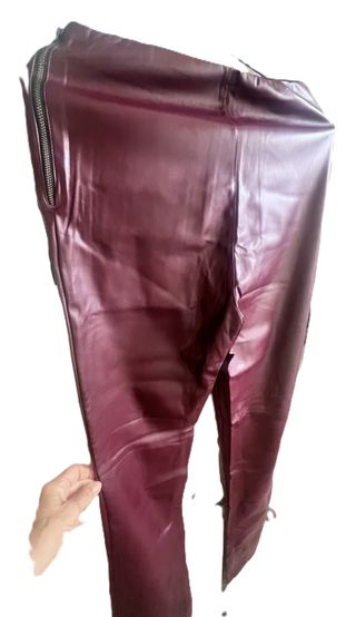Pantalones Mango Cuero Talla 32 Rojo/Morado