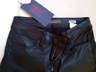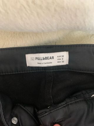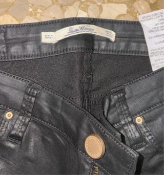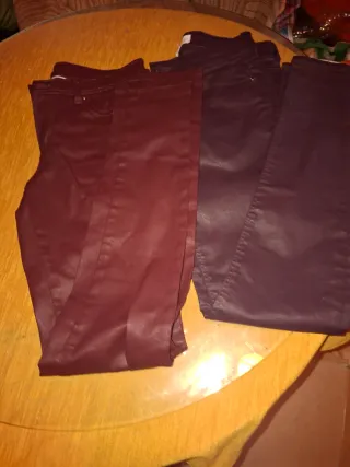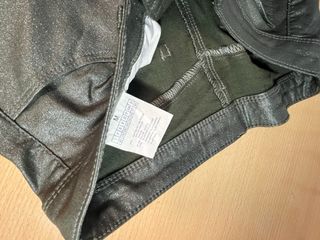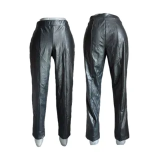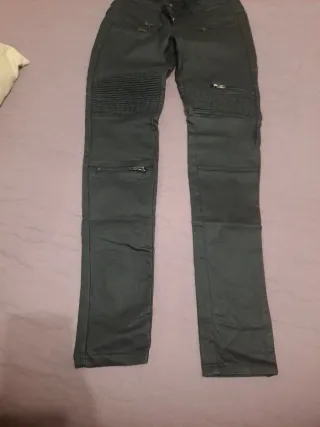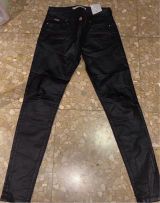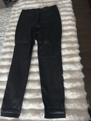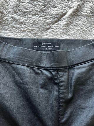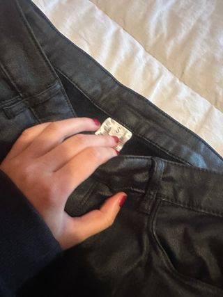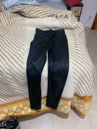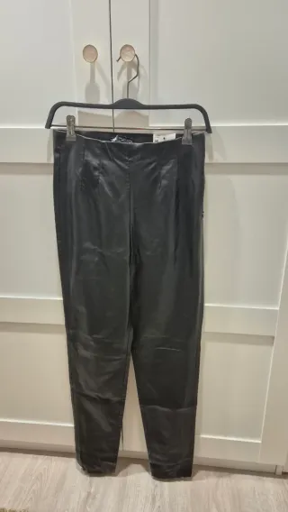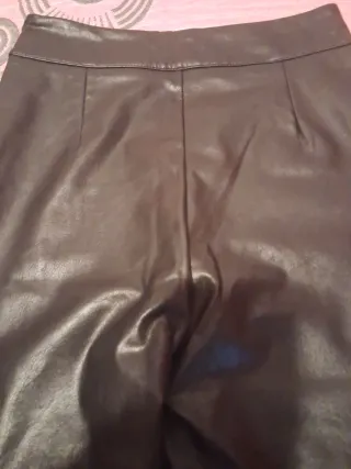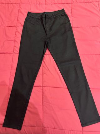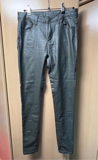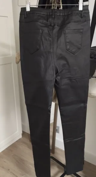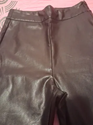 Pantalones de estilo cuero, con un acabado liso y brillante. - Diseño de corte recto. - Cierre de cremallera y botón. - Bolsillos delanteros y traseros. el único desperfecto sale en las fotos