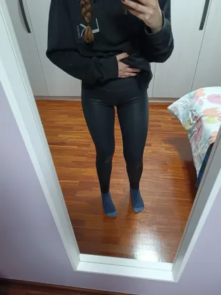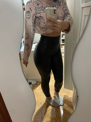 Leggings de cuero sintético por dentro es calentito. - Material: Cuero sintético. - Corte ajustado. Nuevo sin etiquetas Sin estrenar,pensaba que me estaría bien y se las quite