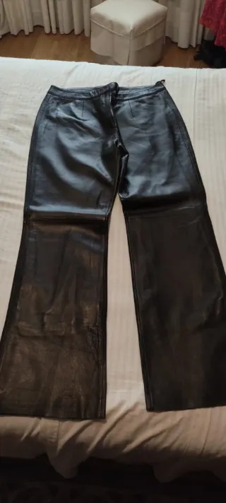 Pantalón de cuero de alta calidad de la marca Crémieux. - Diseño elegante y moderno. - Material de cuero genuino. - Corte favorecedor. - El forro un poco descosido. - Valor nuevo: 250€. Por favor, lee atentamente el anuncio: no se admite devolución o reembolso.