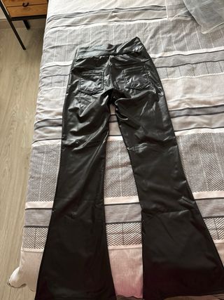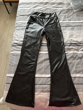 Pantalón de polipiel con corte campana. Se ajusta para 42/44. Tejido flexible y elástico con felpa en interior. Nunca usado. - Diseño de pierna ancha. - Costuras marcadas.