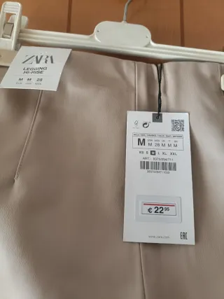 Pantalón de Zara en color beige, con un diseño elegante y moderno. Está sin estrenar - Material: Cuero - Color: Beige