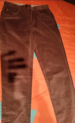 Pantalón de pana de color marrón. - Tejido de pana. - Diseño clásico. -Toene unos detalles de cuero en los bolsollos