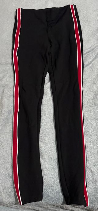 Pantalones de corte ajustado con un diseño deportivo. - Raya lateral en color rojo. - Detalle de ribete blanco en la raya.